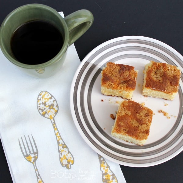 I’m not a huge fan of breakfast. I don’t eat much in the morning, even though I know you really should. I’m usually happy with a cup of yogurt or some fruit. But I make an exception for breakfast sweets. You know, the ones that aren’t at all good for you: donuts, croissants, pastries…and now this awesome coffee cake. It was my turn to bring a snack for our Sunday school class again, so I went scrolling through my Pinterest breakfast board and I made it all the way down to the bottom before this recipe from Kitchen Lab jumped out at me. It was one of the first things I pinned to my breakfast board, so it’s high time I tried it!